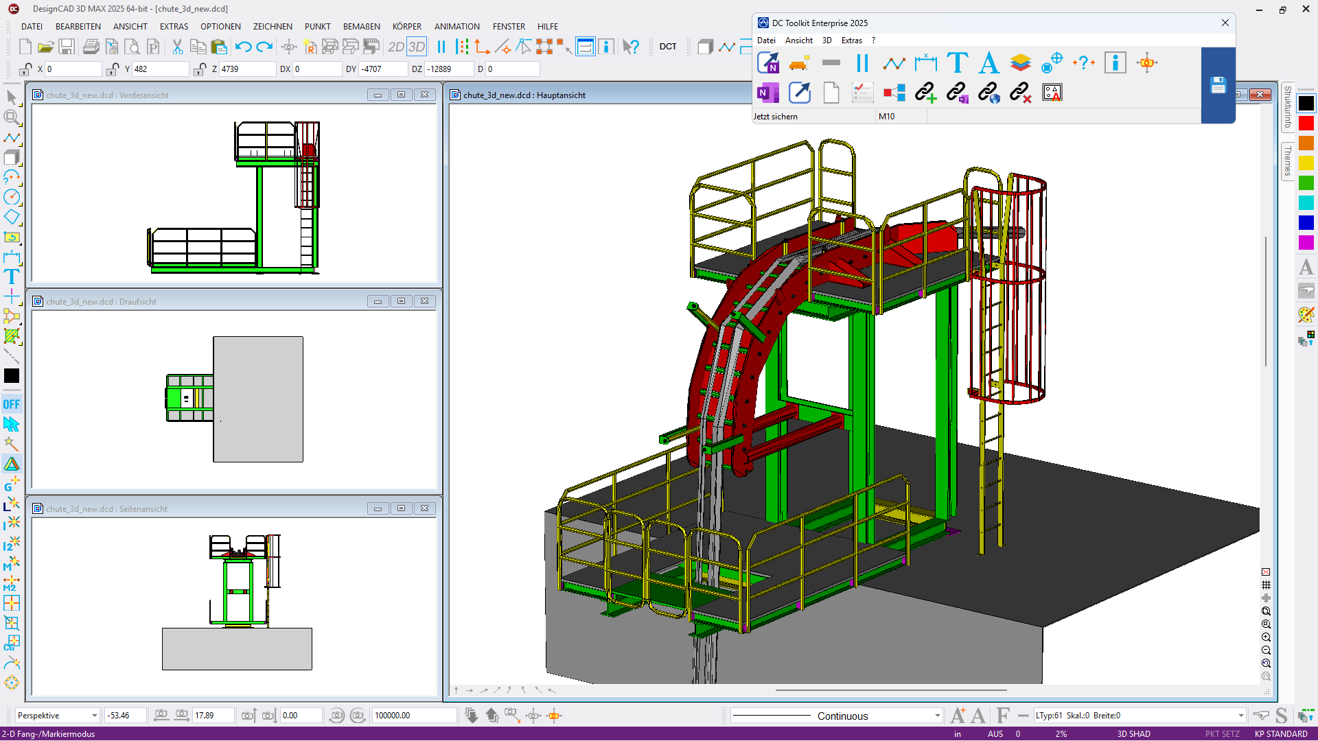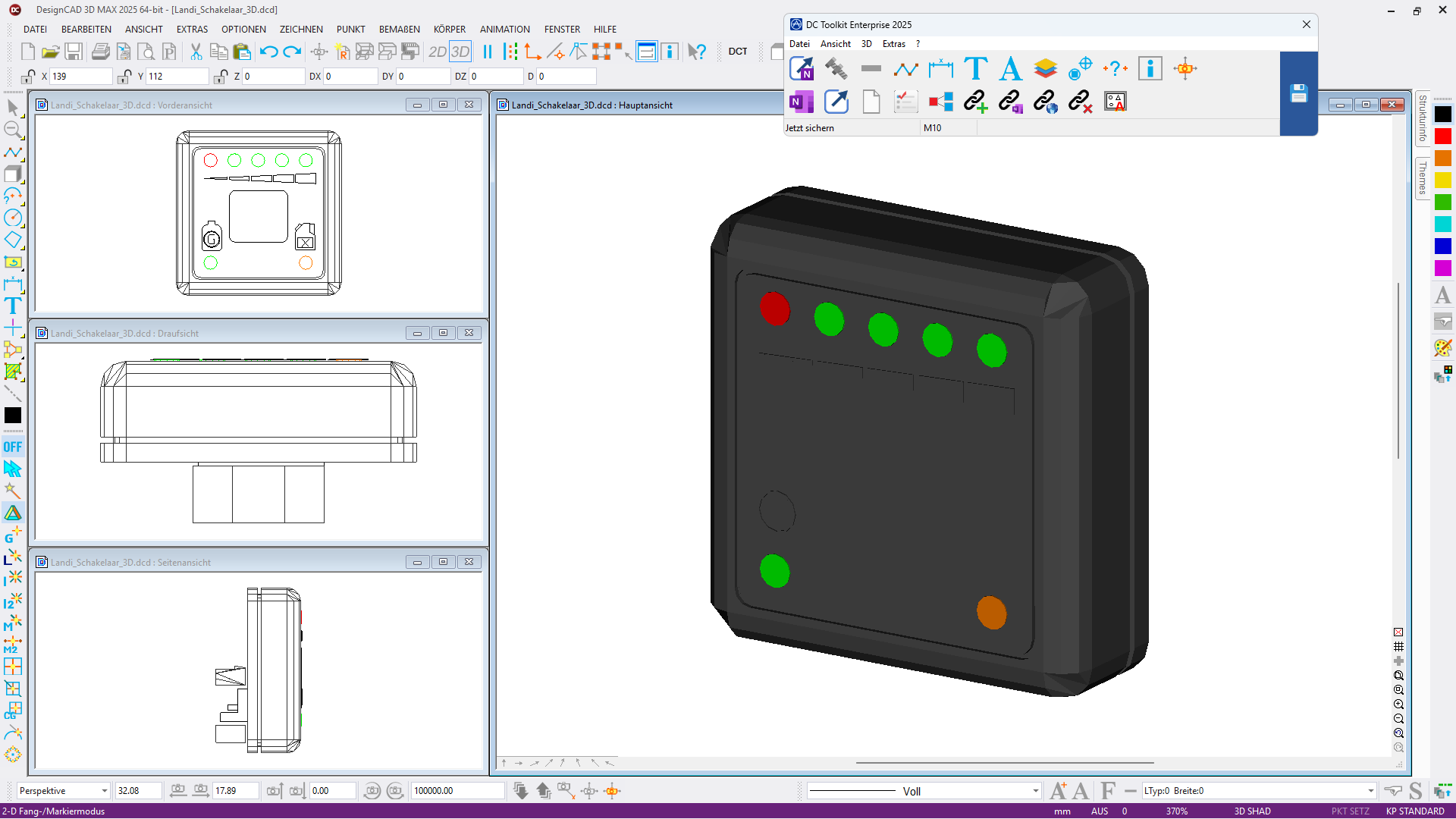 Mit DesignCAD 3D Max V32 (2025) erhalten Sie ein vollwertiges 2D/3D-CAD-System für das schnelle Erstellen von Zeichnungen mit größter Genauigkeit. Konstruieren Sie schnell und einfach Ihre Ideen und erzeugen Sie daraus gleich exakte 3D-Modelle für den 3D-Druck!